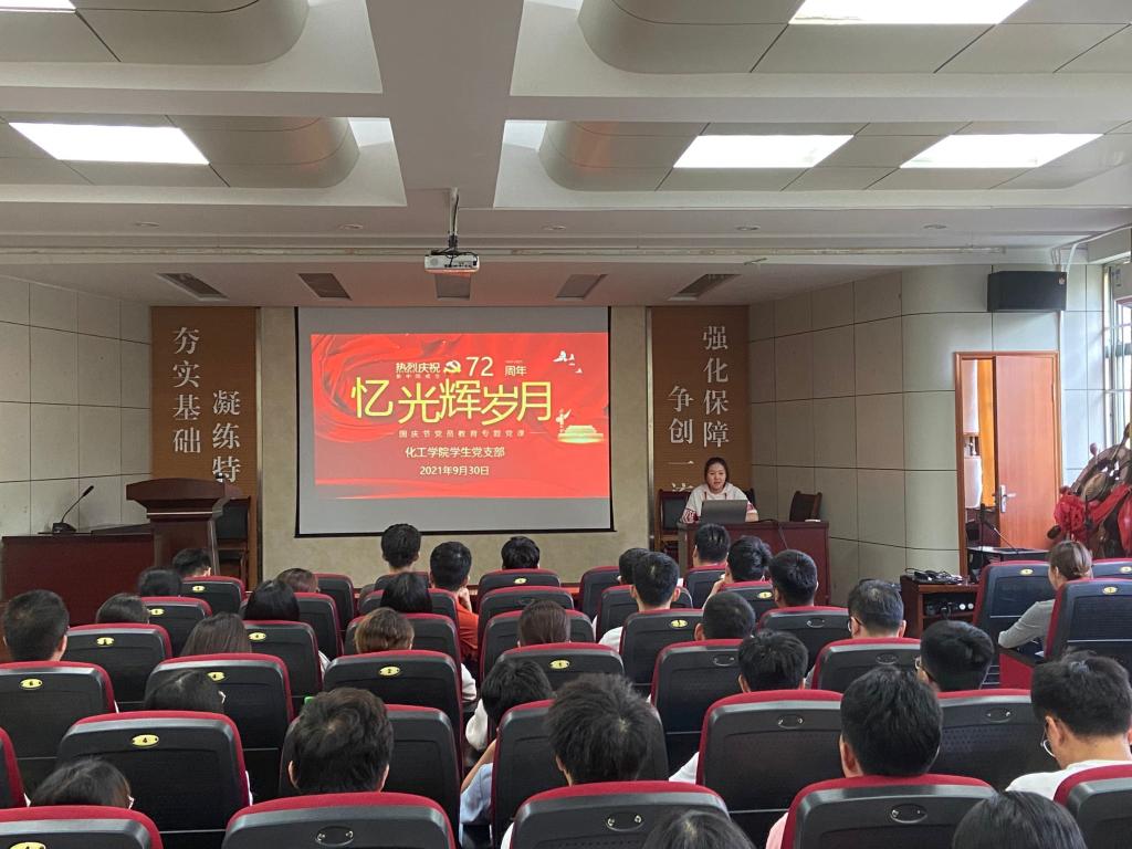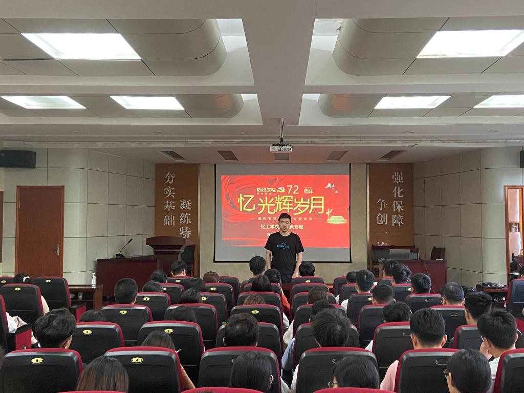 学生党支部举办“忆光辉岁月”主题党日活动,重温中华人民共和国成立72年来的光辉历程。学院全体辅导员、全体学生党员参加此次活动,活动由本科第二党支部书记徐华坤主持。