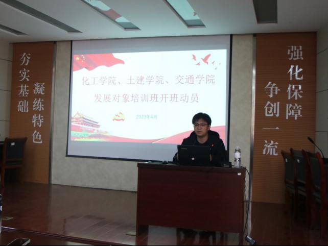 4月17日,校党委统战部常务副部长王永君应邀为化工、土建和交通学院党员发展对象培训班讲授第一讲“中国共产党的特质”。