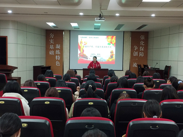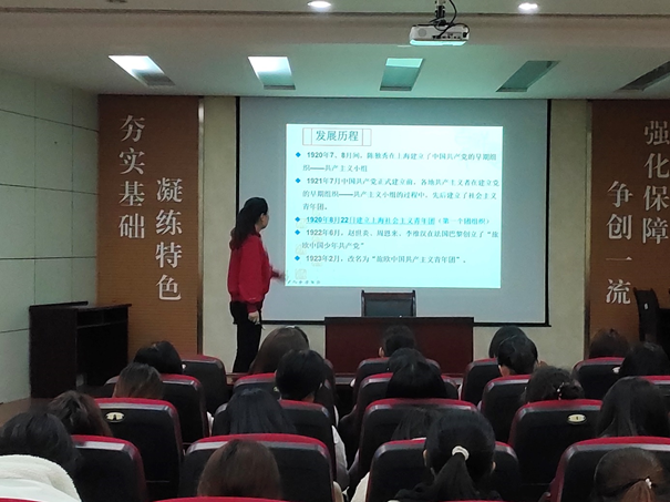 “小葵花”系列团课开讲。本次课程由学院团委书记易凡担任主讲,各班级团支部书记到场聆听。此次团课的主要内容是中国共产党和中国共青团的历史。首先,易凡老师用半个小时的时间,带领各团支部书记回顾了中国共产党自成立以来至今的100年光辉历史。随后,沿着党史的脉络,她详细介绍了中国共青团的发展历程,并梳理了历次团代会的开展情况,强调了中国共青团的性质,要求广大团支部书记要熟知团的历史,在实际工作中认真贯彻上级团组织的各项方针政策,推进落实相关工作,进一步加强对青年团员的思想引领。课程最后,易凡老师安排了团支部近期评优评先的相关工作。