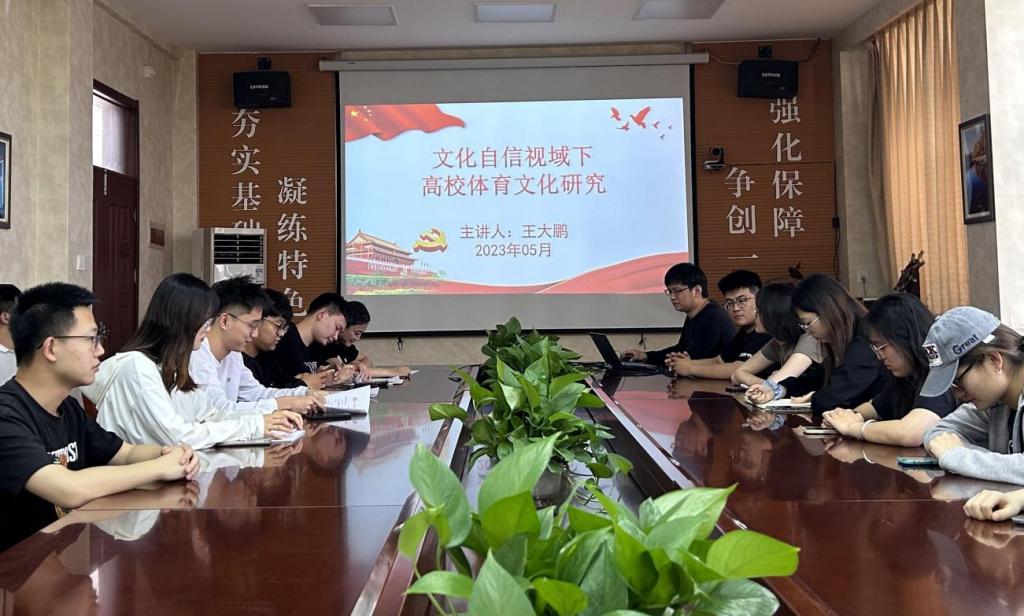 专职组织员、田径队党支部书记王大鹏为学院学生作《文化自信视域下高校体育文化研究》学术讲座。