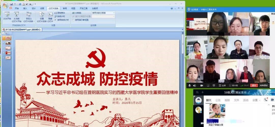 积极组织学生学习贯彻习近平总书记给在首钢医院实习的西藏大学医学院学生的回信精神,结合当前疫情防控的形势,充分利用网络平台,通过多种方式和途径开展工作。