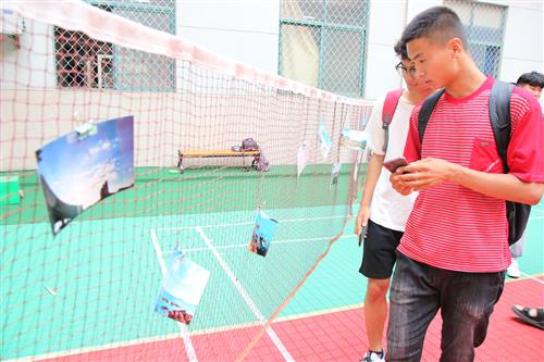 下午两点,世界环境日照片展出活动正式开始。文化广场挤满了前来参观的同学。他们围在展览面板前,时而驻足观看,时而热烈讨论。绿色使者协会还安排了线上、线下投票活动,最后票数前十的作品作者获得随环保志愿者一道前往明天在黄河西路小学进行的环保宣讲活动。