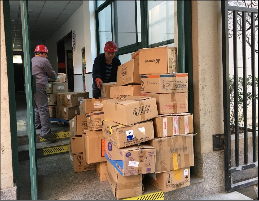 实验中心教职工协同有资质的第三方公司人员清理转运里番