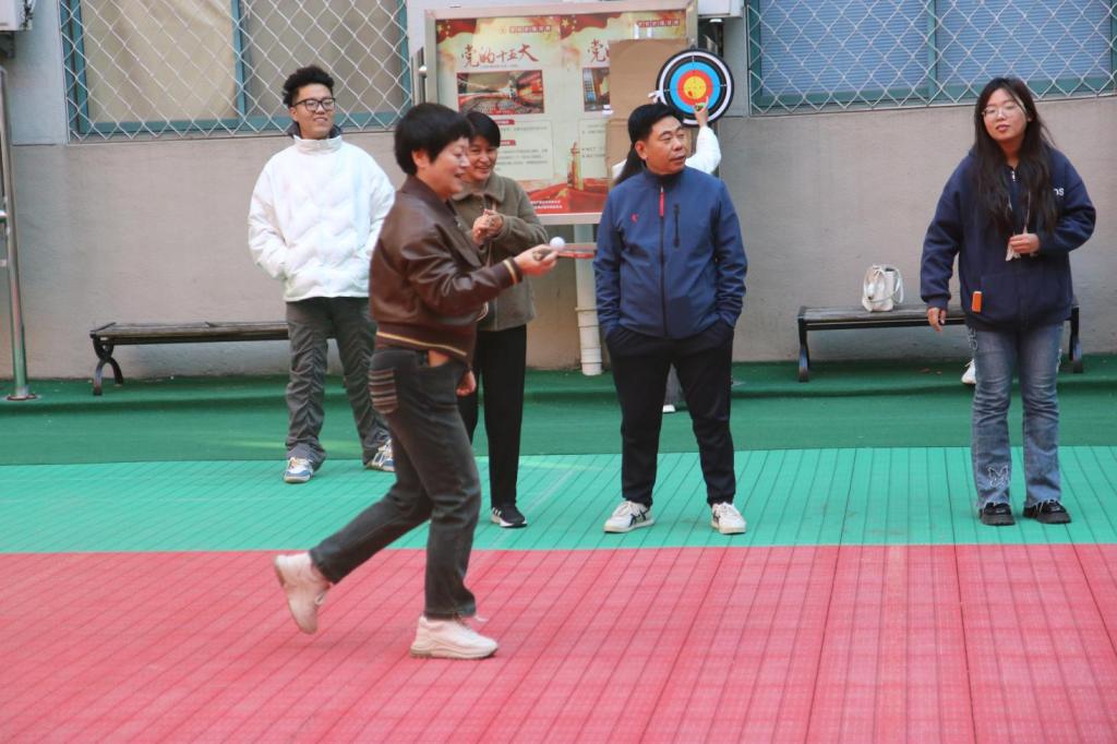 老师们充分发挥自己的实力,比赛进行得如火如荼。在飞镖投掷游戏中,老师们从容不迫、眼明手快,将飞镖掷向标靶的中央;在乒乓接力游戏中,老师们配合默契、分秒必争,用球拍托起乒乓球快速奔跑着;在“就不听指挥”游戏过程中,老师们跃跃欲试、表现出彩,按照规则及时做出与指令相反的动作。现场欢声笑语一片,气氛愉悦而热烈。