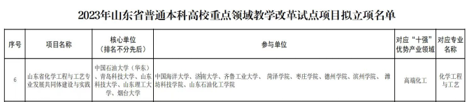近日,山东省教育厅发布了《山东省教育厅关于组织开展2023年山东省普通本科高校重点领域教学改革试点项目建设工作的通知》(鲁教高函〔2023〕36号),其中,以我校为核心单位,依托化学工程与工艺专业(国家一流专业)申报的教学改革项目《山东省化学工程与工艺专业发展共同体建设与实践》获批2023年山东省普通本科高校重点领域教学改革试点项目(山东省“111计划”建设项目)。同时,里番