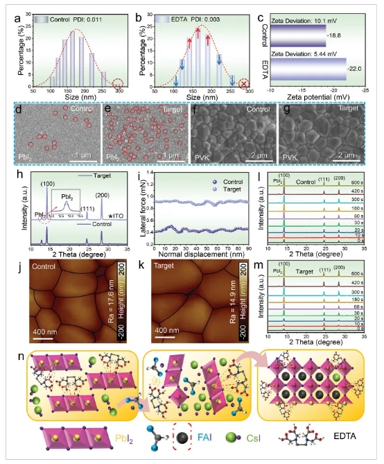 高质量钙钛矿(PVK)薄膜对于制备高效稳定的钙钛矿太阳能电池(PSC)至关重要。PVK悬浮液中不稳定的胶体颗粒会阻碍形成低缺陷密度的晶体薄膜。