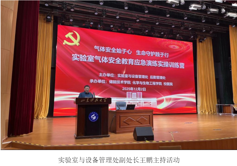 12月2日下午,活动启动仪式暨专题培训同步举行,实验室与设备管理处副处长王鹏主持活动。储能技术学院党委委员于昊教授聚焦实验室气体与气瓶安全管理核心,从气体物理化学危险特性、气瓶分类标识、安全使用全流程、风险识别管控及泄漏应急响应与个人防护等关键维度,进行了全面深入的系统性讲解,精准回应气瓶使用中的常见问题。青岛西海岸新区急救中心专家梁爽则针对实验场景中可能出现的心跳骤停等突发状况,开展心肺复苏(CPR)与自动体外除颤器(AED)使用专项培训,通过专业示范与要点拆解,为师生传授应急救治实用技能。两场高质量培训为后续演练与实操环节筑牢了坚实的理论基础。