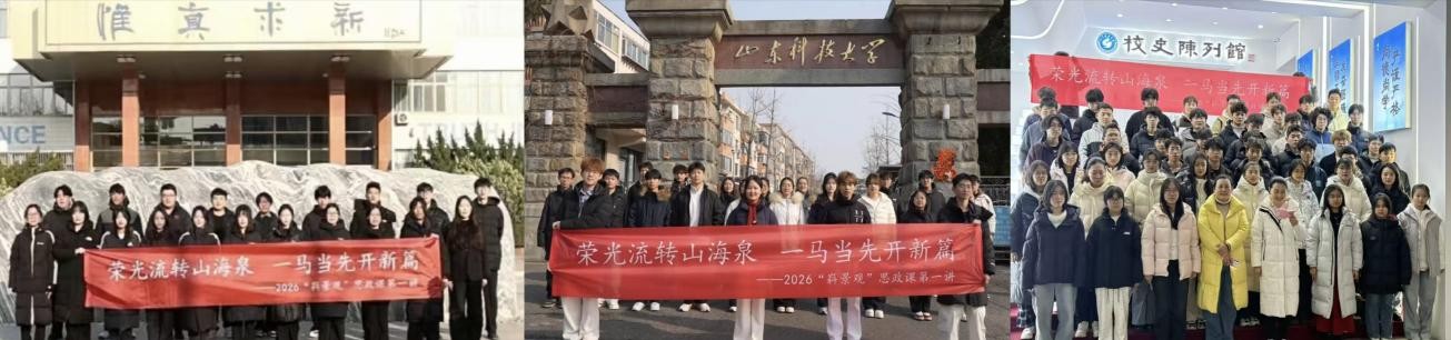 2026年“嵙景观”思政课第一讲开讲。课程以“荣光流转山海泉,一马当先开新篇”为主题,首次运用网络直播、三地联动的方式,打破空间壁垒,从云端将泰安、济南、青岛校区纳入“山科大思政”的教育实践全过程。其中,青岛校区里番