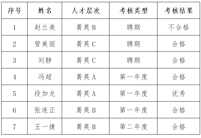 经学院考核,现将刘静等7位高层次人才的考核结果予以公示。如有异议,请在公示期内反映。