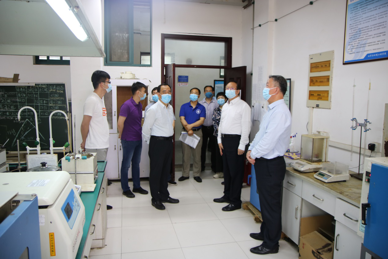 罗书记查看了学院化学试剂及废弃物存储柜、化学固废暂存点、基础化学实验室、学院科研实验室,全面了解实验室废弃物存放处理、通风设施、值班安排、日常消杀制度等,仔细询问了学生返校后实验教学活动的安排情况,查看了研究生科研实验室的学习工作环境。吕院长向罗书记详细汇报了疫情防控期间实验室管理办法和各项安全保障措施,学院认真落实学校关于实验室安全工作要求,积极采取相应措施,认真制定学生复课后的实验室教学方案,确保教学科研活动安全有序进行。