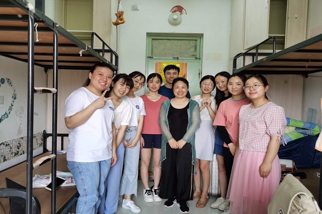 “老师,您怎么来了?”“临行前又见到您真是太开心了!”同学们听说学院领导老师前来看望,又惊又喜,纷纷出门迎接,兴奋感激之情溢于言表。