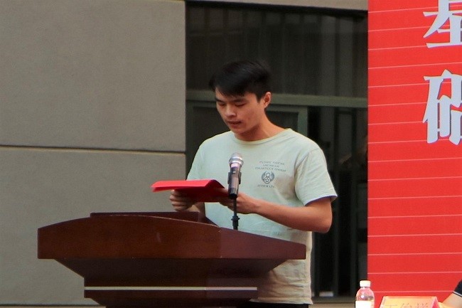 新生代表董莹表达了对加入化工大家庭的喜悦之情,并代表全体新生郑重承诺:端正态度,统一认识,振奋精神;服从命令,严格要求,团结协作;全力投入,顽强拼搏,收获成功。期待在这里放飞新的梦想,收获新的希望。