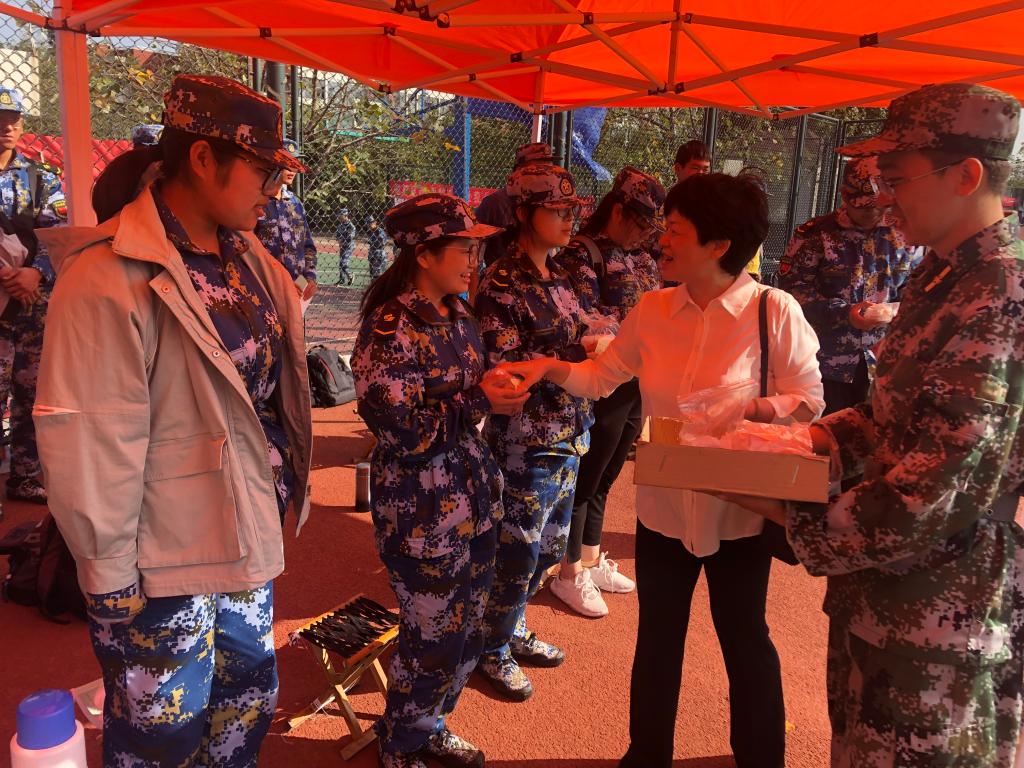 院长吕宪俊、学院党委副书记兼副院长田静,学院学工办主任(团委书记)易凡、新生辅导员及班主任们来到军训场地,将饱含温情、精心准备的节日礼物——爱心月饼送到每一位新生手中,并向他们致以节日的问候,与他们共迎双节、共享喜悦。