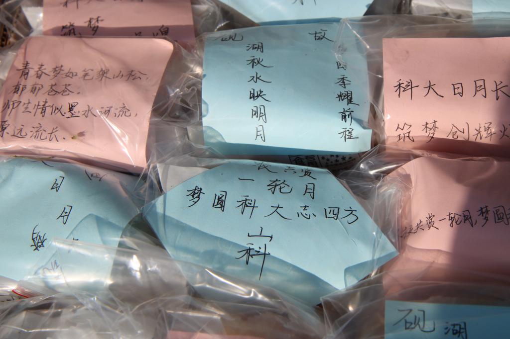 由于疫情原因,今年大部分新生选择留校度过国庆中秋。为了丰富同学们的假期生活,缓解思乡之情,学院提前购买了月饼,精心制作了祝福卡片,作为节日礼物送给每一位新生。“墨水河映天上月,眼前人似故乡人”、“青春梦如笔架山松,郁郁苍苍;师生情似墨水河流,源远流长”、“家校共赏一轮月,梦圆科大志四方”……一句句真挚的祝福和企盼,表达着学院对新生的祝愿和关怀,传递着对新生满满的爱。