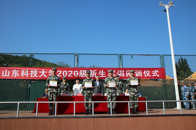 2020级新生军事训练汇报表演暨总结表彰大会在高地操场举行,学院院长吕宪俊、学院党委副书记兼副院长田静,学院学工办主任(团委书记)易凡、2020级新生辅导员及全体新生班主任参加大会并在主席台就坐。大会由易凡主持。
