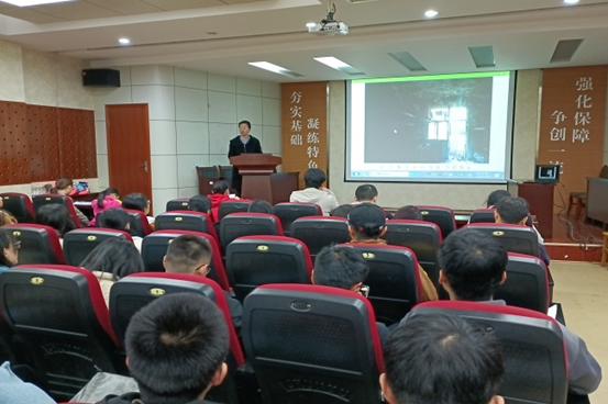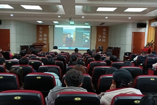 2015届优秀毕业生、现任湖南省岳阳市湘阴县洋沙湖大道消防救援站站长陈甄文,通过视频连线的方式,向现场党员进行宣讲。陈站长结合五年多消防工作经历,抒发了自己对消防安全的感悟,表达了对消防员工作荣誉感使命感的理解和认同,号召大家认真学习消防安全知识,掌握防火救火基本技能,切莫轻视消防安全。
