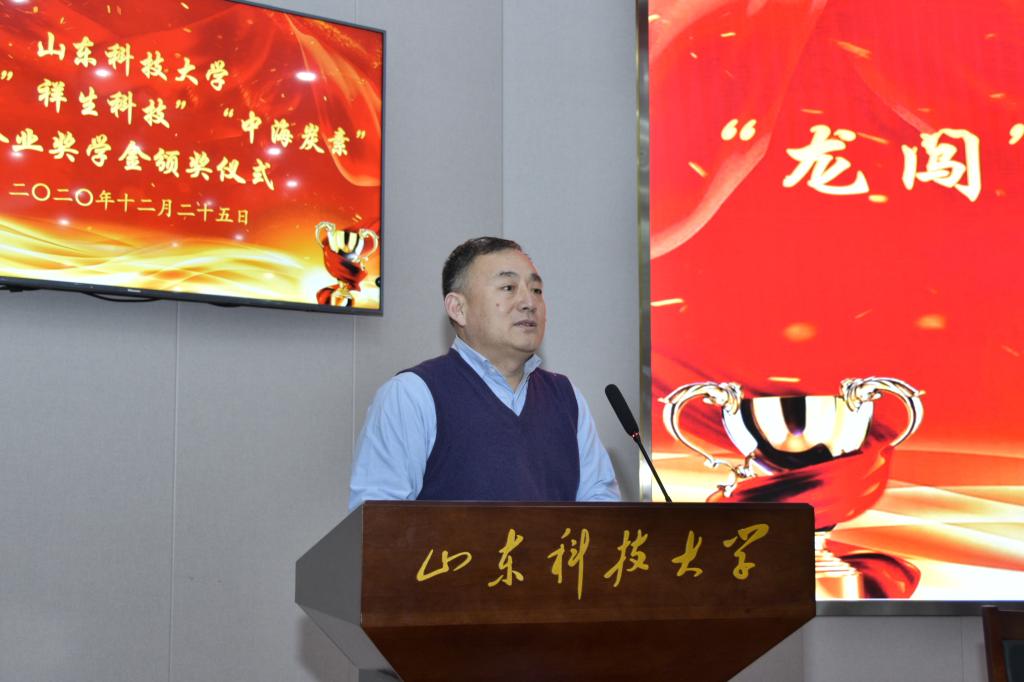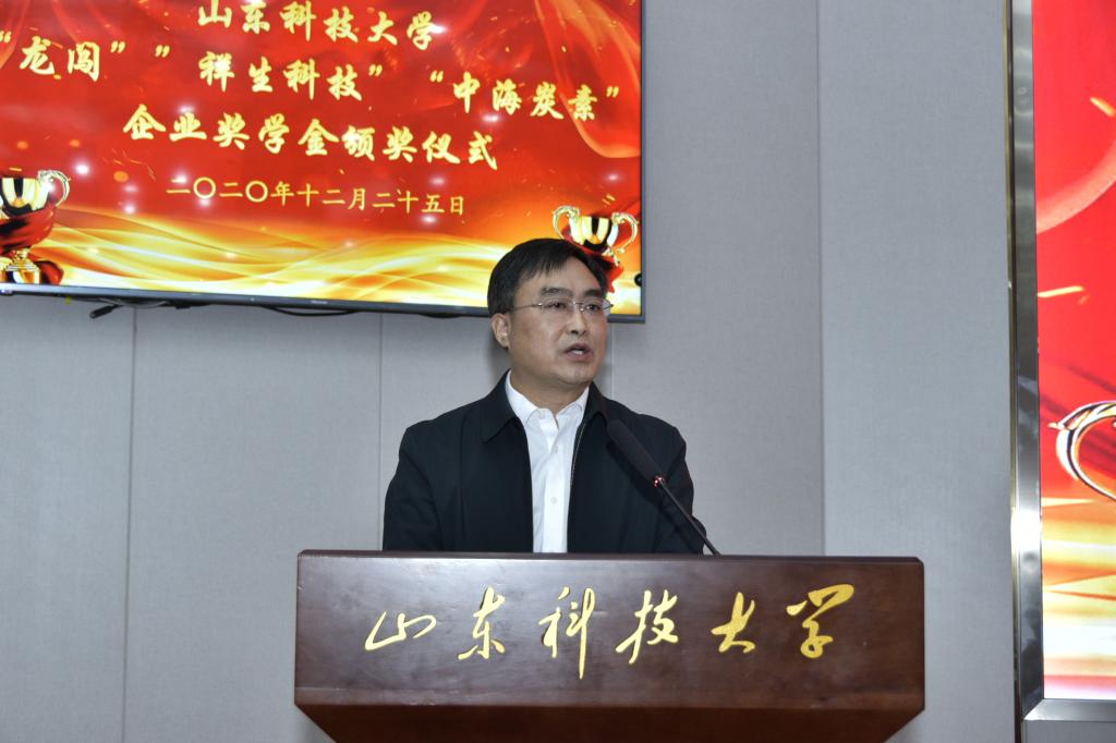 举行2020年度“龙闯”“祥生科技”“中海碳素”企业奖学金颁奖仪式。副校长高建广出席仪式并讲话。