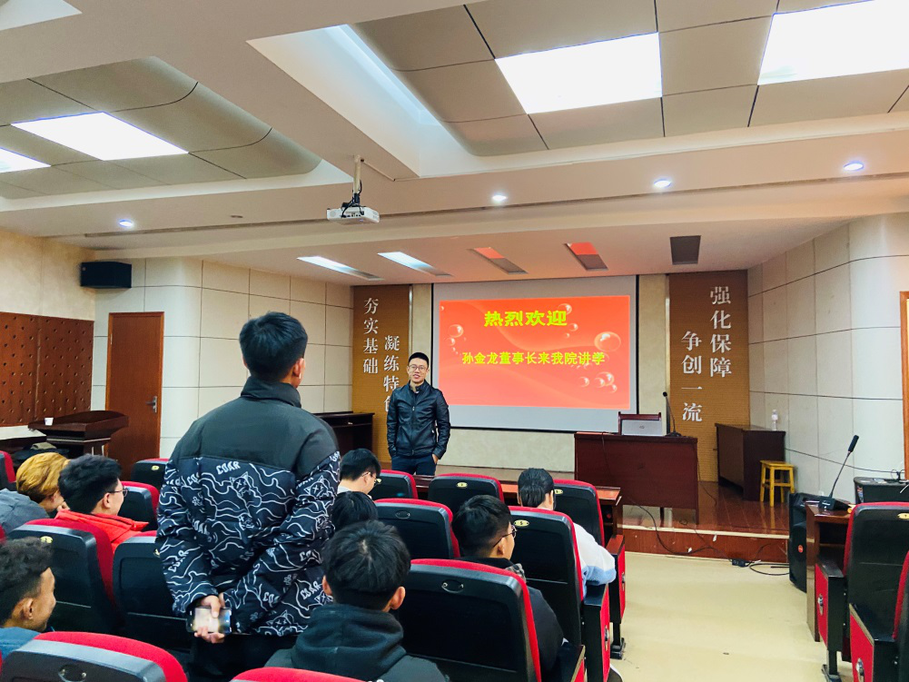 孙金龙董事长结合自身经历,从“大学是什么,两代学生对比及创新创业”三个方面讲述个人经验与人生心得。以“工业社会变革”的四个阶段为例分析了时代与机遇,同时提出了“认知”与“思维”两个关键词,加深了同学们对社会、人生的理解,引发同学们的思考。他同时强调大学是一个多样化的社会,鼓励同学们在四年大学生活中提高逻辑思维能力以及信息处理能力,要重视平台与机遇,把握好自己的人生。他指出同学们在大学时期应注重培养自身专业兴趣,在打好专业基础的同时,也应积极参加一些实践锻炼充实自己,获得全新体验。互动环节,孙金龙董事长与大家就所关心的就业等问题进行了热烈讨论。