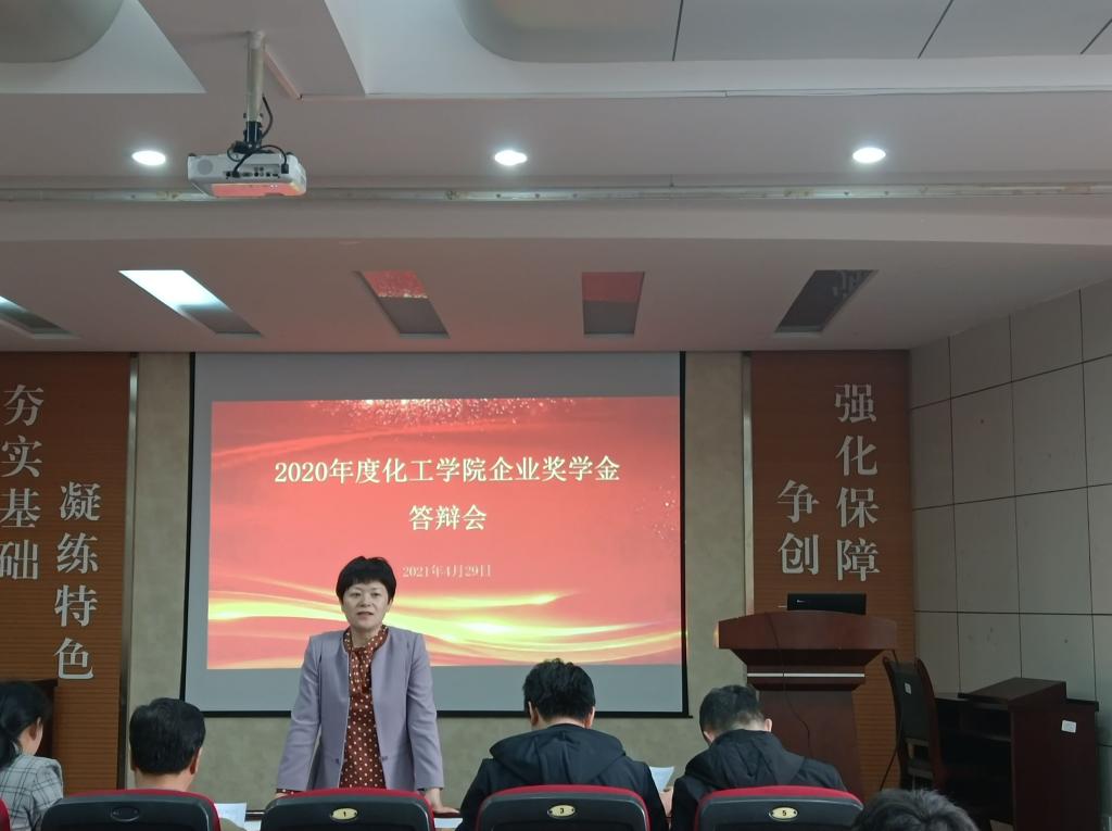 召开2020年度“金能化学”一等奖学金等大额企业奖学金答辩评审会。学院党委副书记兼副院长田静教授、副院长高军教授、辅导员等担任评委,部分学生代表聆听了答辩。