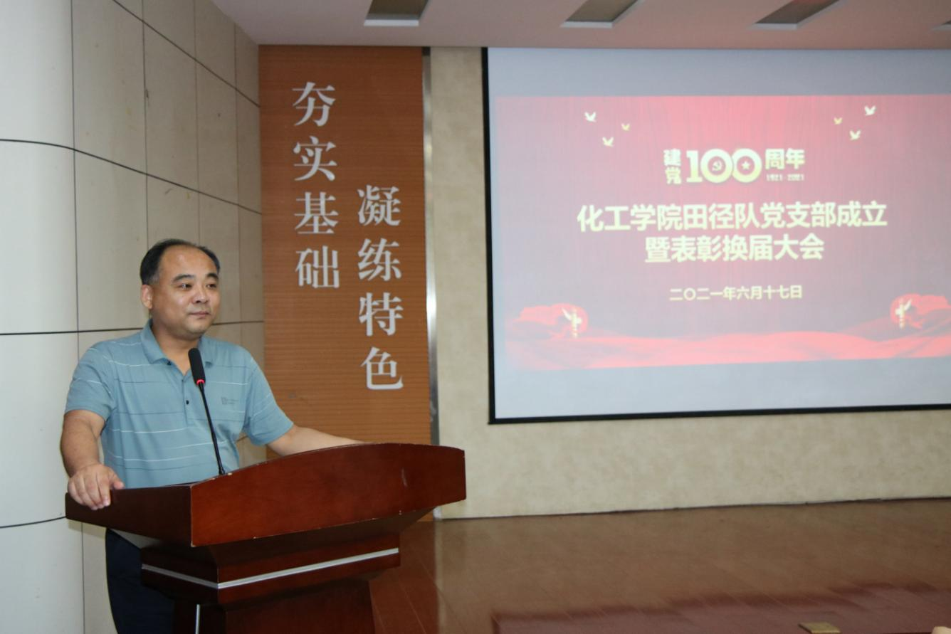 窦书记在讲话中向田径队党支部的成立表示热烈祝贺,向全体运动员、教练员表示衷心感谢。他指出,田径队党支部的成立,对于学院党的建设和田径队的长远发展具有里程碑式的重要意义,里番