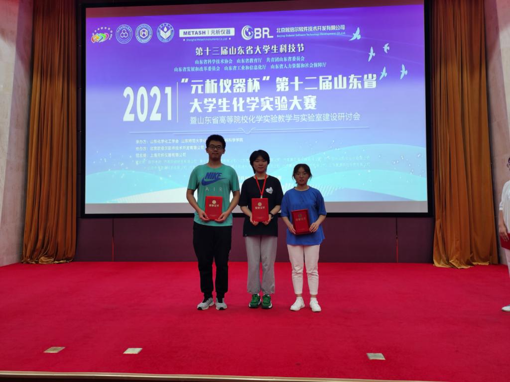 应用化学专业学生高帆、尚琳卿同学荣获大赛一等奖,高梦悦同学荣获二等奖,刘青云、王鹏、黄永清担任指导教师。