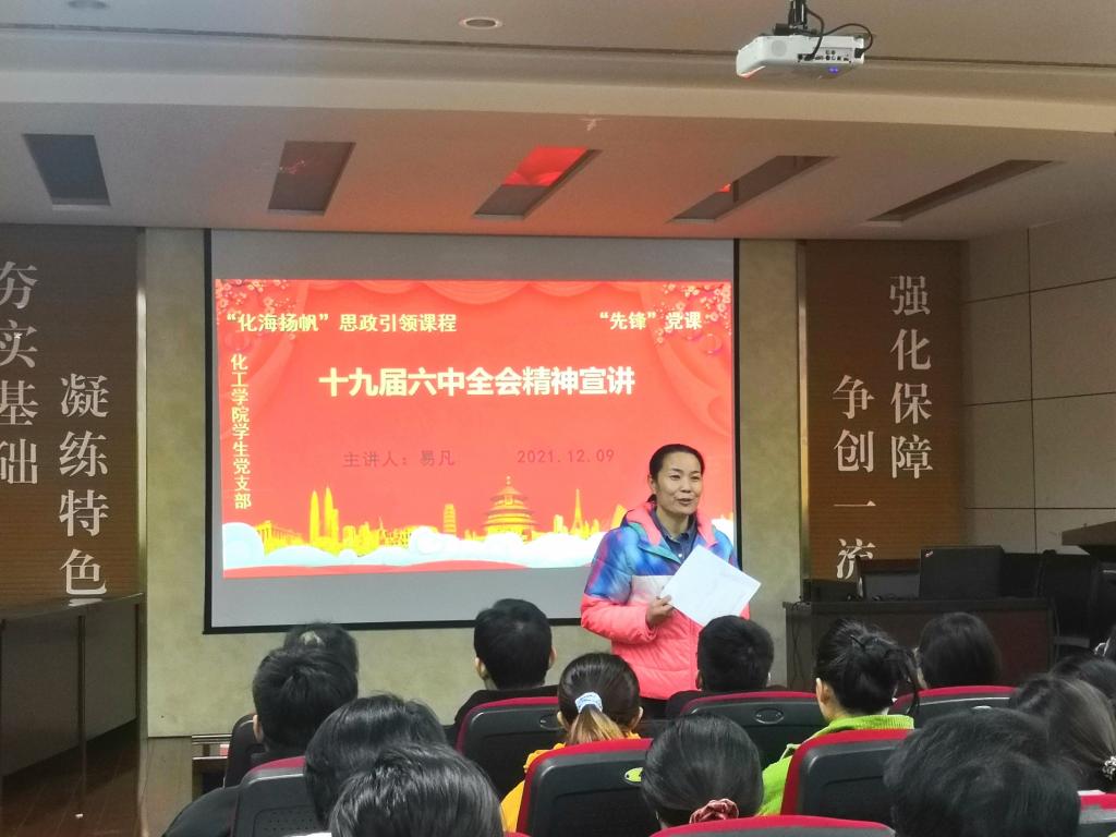 主题党日活动进行了四十分钟,在热烈的气氛中结束后,本科第一支部书记李玲玲老师和本科第二支部书记徐华坤老师轮流上台,向全体同志做党的十九届六中全会精神宣讲。最后,院团委书记、研究生支部书记易凡老师做活动总结,她号召广大同志铭记历史、不忘初心,在2021年将要结束的12月,总结过往,计划未来,以更加积极的态度学习十九届六中全会的精神,带着更加饱满的热情、更加充足的干劲迎接2022年和党的二十大,与全国人民一道,在中华民族复兴的各项事业中贡献全部力量,书写新的华章。