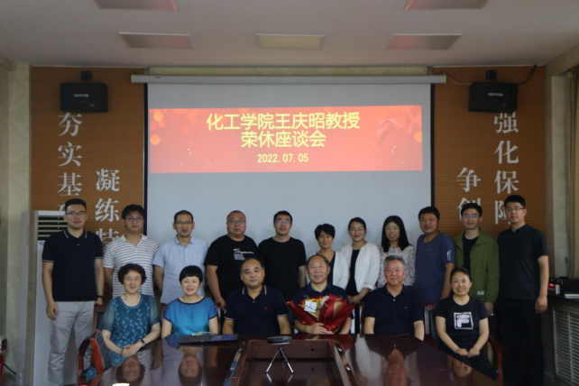 举办王庆昭教授荣休座谈会,学院党委书记窦存增、院长吕宪俊,党委副书记兼副院长、工会主席田静以及应化系教师代表参加了座谈会,会议由田静主持。