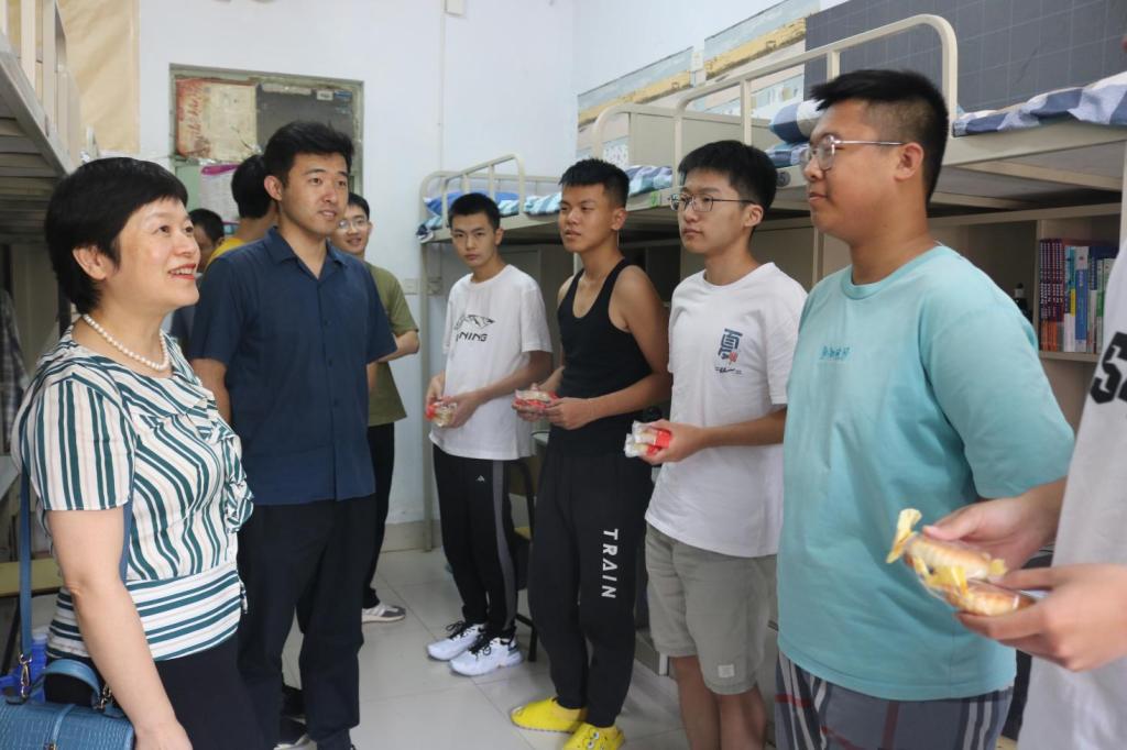领导老师与学生们亲切交谈,询问他们入校后的适应情况,关心他们的生活起居,了解他们的思想动态,现场气氛其乐融融。
