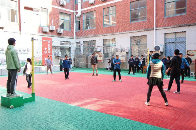 于J2文化广场举办教职工趣味排球赛。本次比赛分为应化队、化工队、矿加生工联队、机关实验中心联队共四队。比赛采用淘汰赛赛制,赛前抽签决定对手,两两对阵。每场比赛三局两胜,胜者进入决赛,负者争夺第三名。