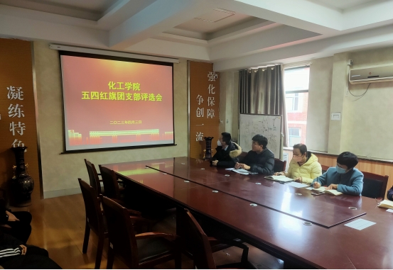 于J2-431会议室举办共青团五四红旗团支部答辩评选会,学院党委副书记兼副院长田静、团委全体专兼职辅导员参加并担任评委,评选会由辅导员满灏主持。