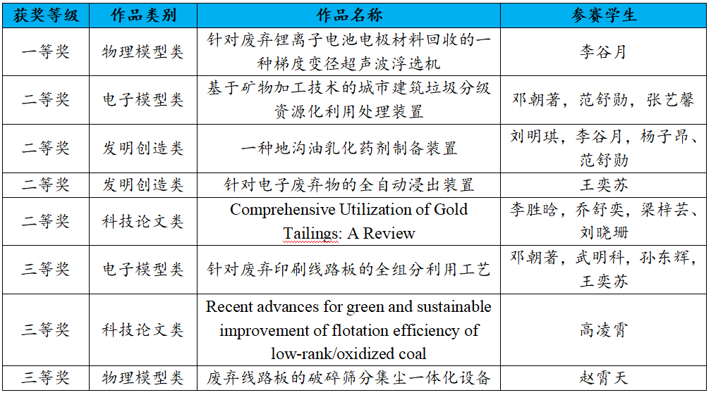 本届大赛由教育部高等学校矿业类专业教学指导委员会、中国高校矿物加工工程专业协同合作联盟主办,江西理工大学、福州大学联合承办,共有来自全国30余所高校的1000余名师生参加,参赛作品经过校内初评、专家网评、现场答辩等环节评选出各类奖项。