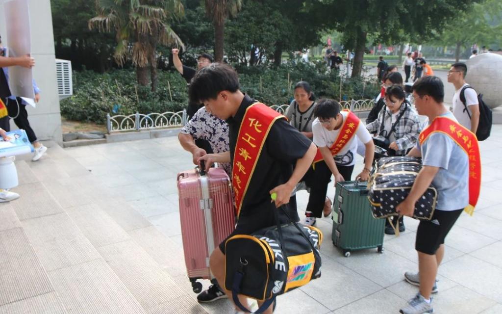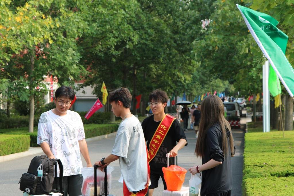 迎新工作进行时,化工学子们纷纷化身志愿者。各专业学生轮流值班,确保迎新全时段皆有志愿者在岗服务;各组织合理分工,为新生入学报到提供贴心、周到的服务。志愿者们从校门口到报道处再到宿舍,引导带路,帮搬行李,耐心答疑,全程陪同,让新生们在踏入科大校园这一刻起便感受到浓浓的温情。