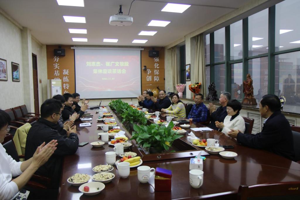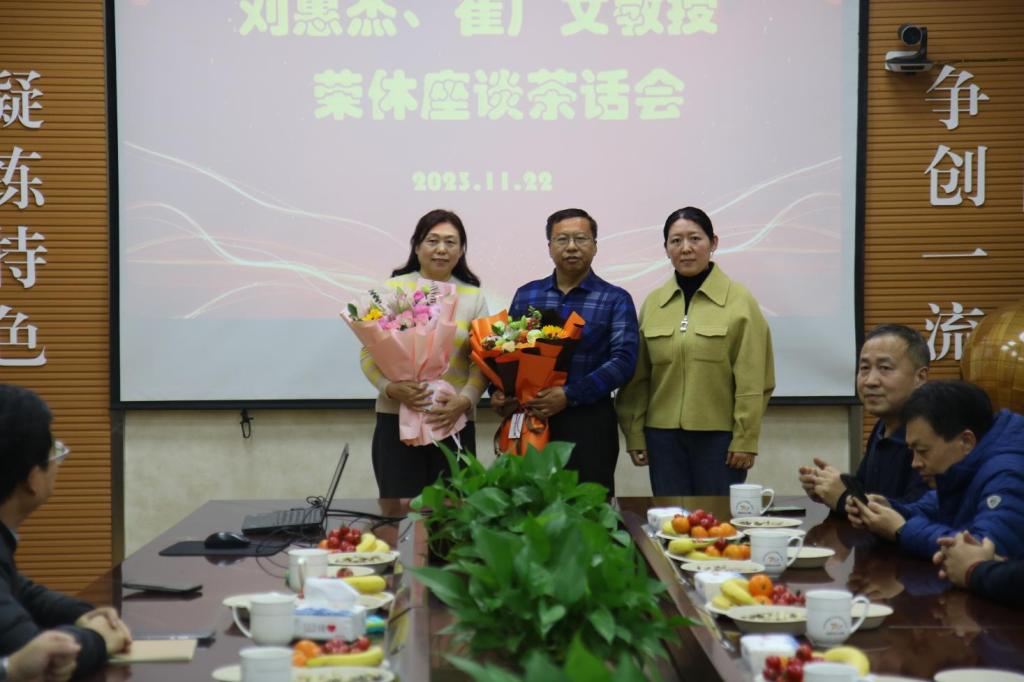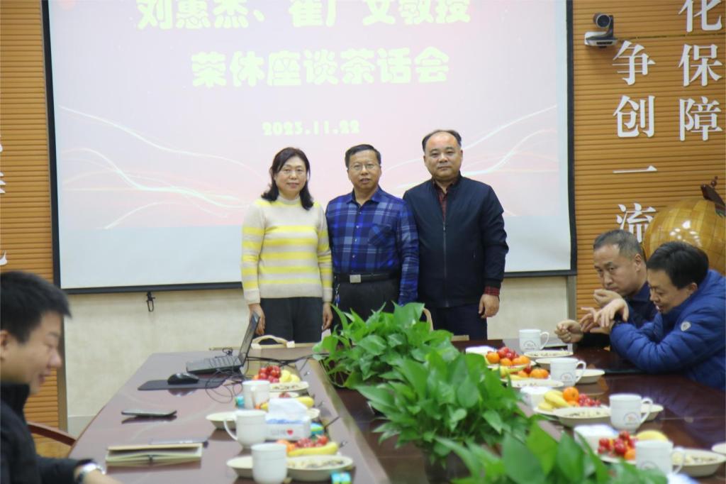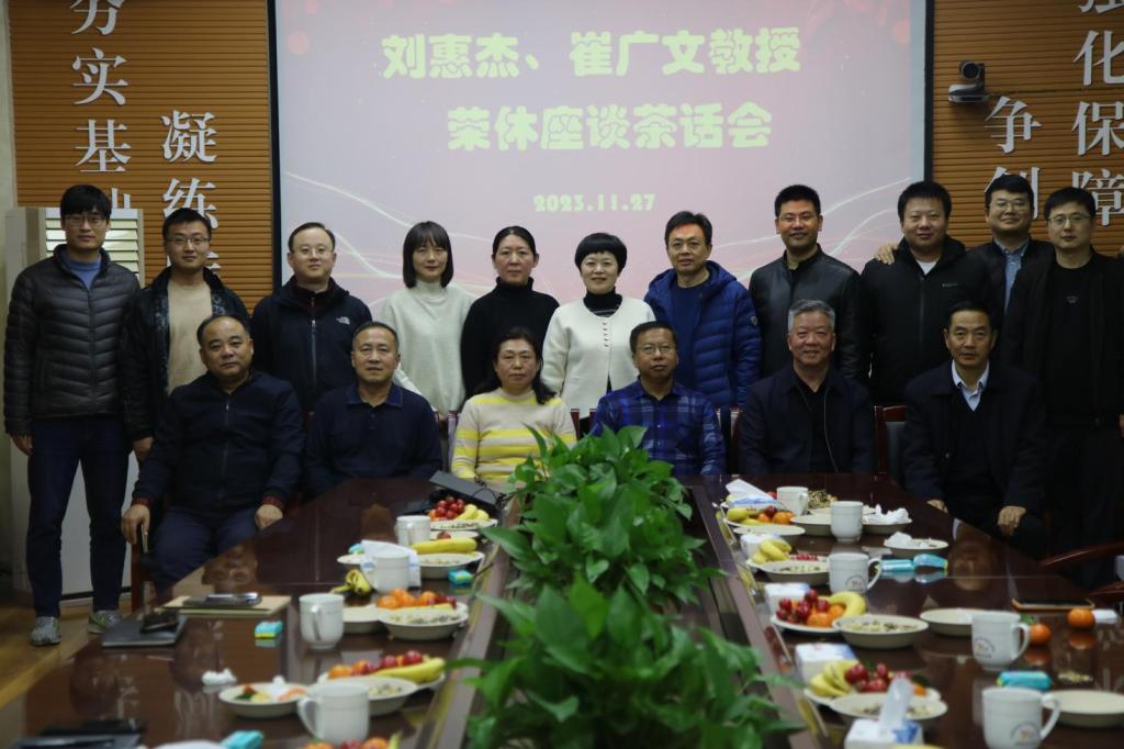 举办刘惠杰、崔广文教授夫妇荣休座谈茶话会,学院党委书记窦存增,院长吕宪俊,党委副书记兼副院长、院工会主席田静及学院教师代表参加座谈会,会议由田静主持。