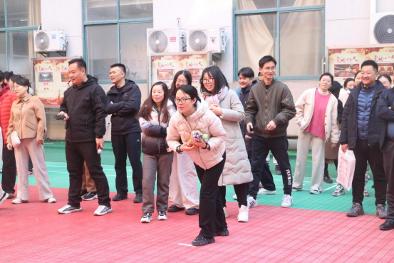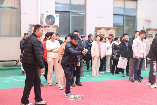 本次活动共有投壶和扔沙包两个游戏项目。老师们在投壶场地手持箭矢,微微弯腰,轻抖手腕,将箭矢投向壶口。每当一支箭稳稳落入壶中,清脆的碰撞声仿佛是对选手技艺的礼赞。场外的加油声、欢呼声此起彼伏,为参赛选手们注入源源不断的动力。在扔沙包比赛上,老师们手中紧握着的沙包,舒展手臂,向铺在地面上的积分靶抛去。有的沙包如精准的子弹,直直冲向目标,“砰”地一声砸中得分区域,周围顿时爆发出热烈的欢呼声与掌声;有的沙包则稍稍偏离,擦着目标边缘划过,引得观众们发出一阵惋惜的叹息。活动现场气氛热烈,欢声笑语一片。