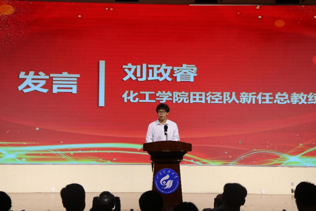 在田径队换届仪式上,田静为新任田径队教练刘政睿、兰庆雷、武俊妍、陆星宇颁发聘书。老教练毕岳洋和新教练刘政睿进行了小黄衫交接仪式。毕岳洋在赛季总结发言中深情回顾了田径队这一年的辛勤耕耘与丰硕成果,向始终支持队伍发展的师长同窗表达了诚挚谢意,并对新一届田径队再创佳绩寄予厚望。刘政睿在履新致辞中郑重承诺,将以满腔热忱履行教练职责,带领田径队开创新的辉煌,矢志传承化工田径的拼搏精神,让小黄衫的荣光在赛场上熠熠生辉,让“化工化工,谁与争锋”的激昂口号响彻云霄。