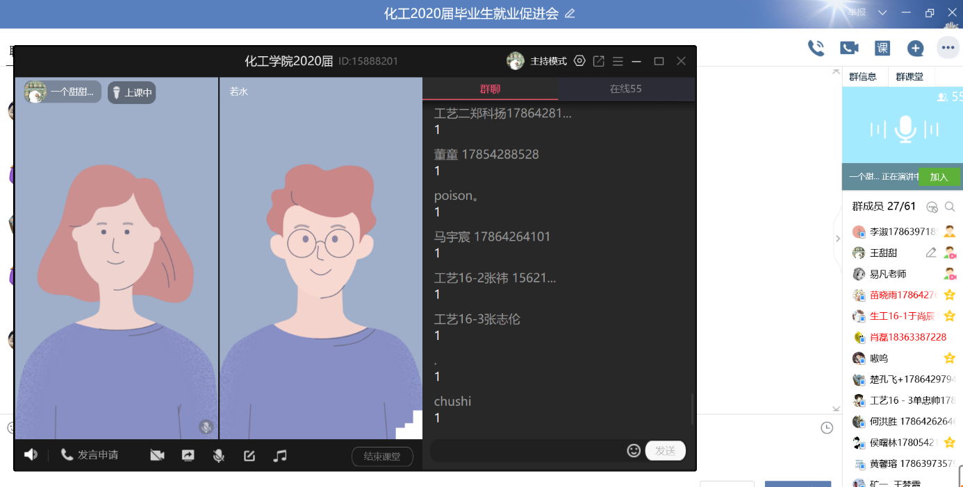 团委书记、本科毕业班辅导员易凡利用QQ群课堂,为毕业生们进行了线上就业指导。