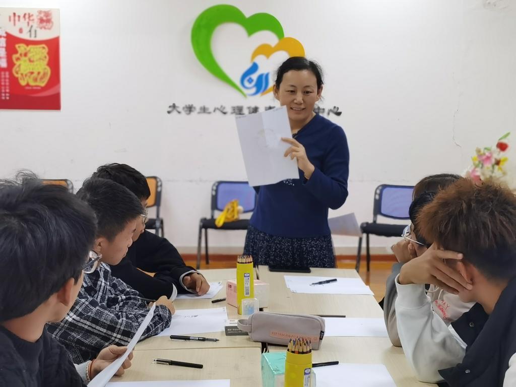 在大学生活动中心312室举办了“画”说心理团体辅导活动。本期活动以“天生我材必有用”为主题,旨在依托绘画,帮助同学们从全新的视角进行自我探索,树立客观的自我认知形象,澄清自身的优缺点,通过成员之间的互动和分享,强化自我表达能力,提升自我觉察和觉察他人需要的能力,同时反思过去、规划未来,更好地促进团体成员的自我接纳。活动指导者为国家三级心理咨询师、绘画心理分析师,学院心理健康教育负责老师李玲玲。