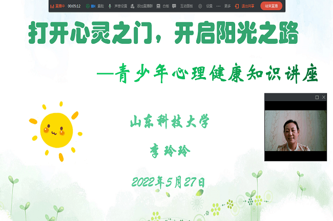 辅导员、校大学生心理健康教育中心咨询师李玲玲为全校500余名初中生开展了以“打开心灵之门,开启阳光之路”为主题的线上心理健康教育讲座。