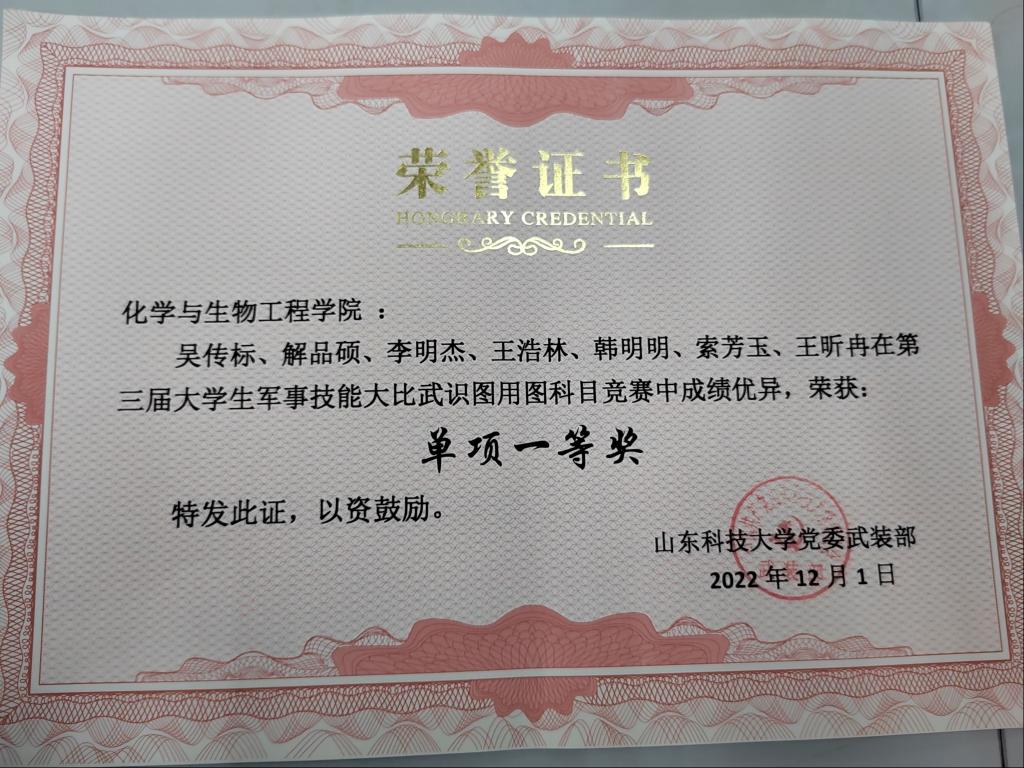 近日,里番 在学校第三届大学生军事技能大比武竞赛中荣获团体一等奖、优秀组织奖和识图用图单项一等奖。学子吴传标、解品硕、李明杰、王浩林、韩明明、索芳玉、王昕冉代表里番 参赛,他们在比赛中展现出良好的技能素养和昂扬的精神面貌,用优异的表现为学院争得荣誉。
