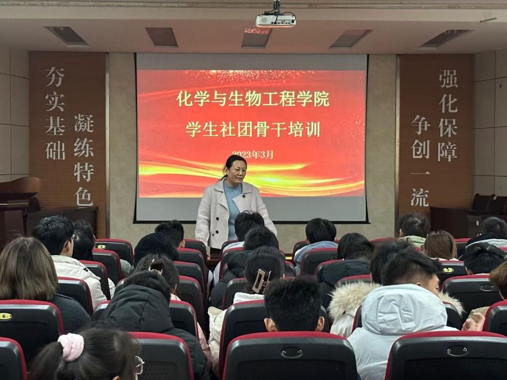 在J2-104报告厅举办院社团部及院各社团骨干开展2023年度学生社团骨干培训会,李玲玲老师担任主讲人。