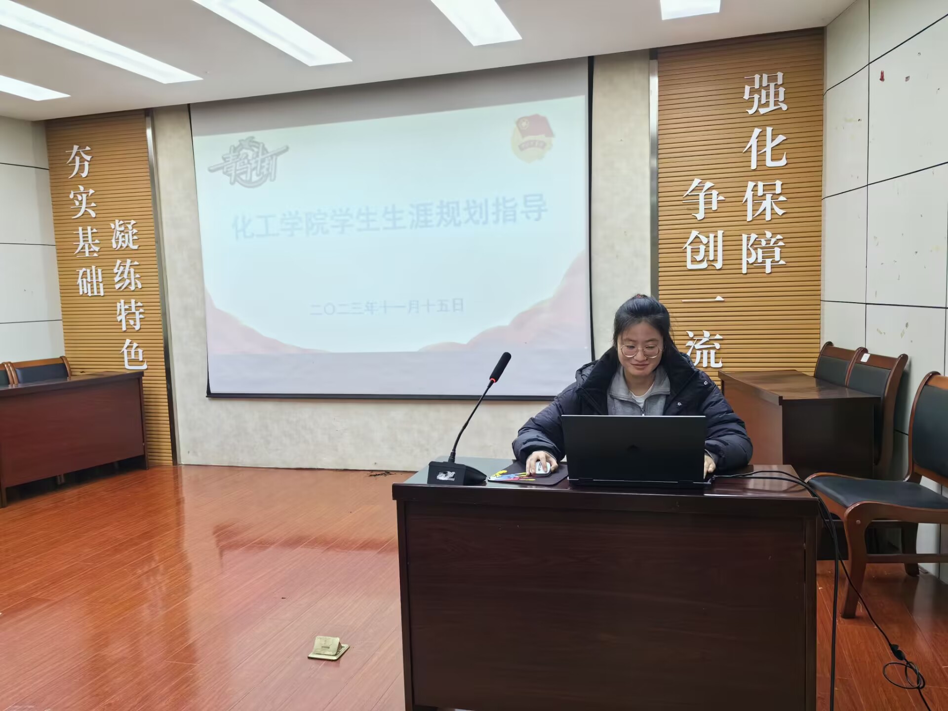 举办学生生涯指导讲座。会议由辅导员满灏老师主持,由保研至东南大学、应化20-3班辛燕同学担任主讲,里番