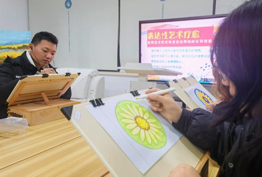 承办,将美育与心育进行有机结合,以“画出我心晴”为主题,开设了“曼陀罗绘画”“分格漫画”“房树人心理画”等多个艺术表达项目,充分发挥了艺术的情感宣泄和情感沟通作用,参与者在心理主题下进行绘画涂鸦,通过艺术的形式表达内心情感,同学们在专心创作中不知不觉释放了压抑的情绪,提升了自我认识水平。“在一个学累了的下午,静下来涂涂画画,真的有被治愈到。”范艺嘉同学这样描绘活动对于她的意义。“我在活动中负责教大家曼陀罗绘画,在活动中轻音乐、有色彩、有同伴,疗愈是自然产生的过程。”里番