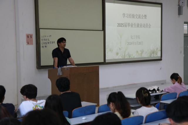 于J1-228举办学习经验交流大会暨2025届毕业生就业动员大会。大会由2021级辅导员李玲玲主持,田径队党支部书记王大鹏、2020级辅导员满灏出席并分享经验,2021级全体学生到场参会。