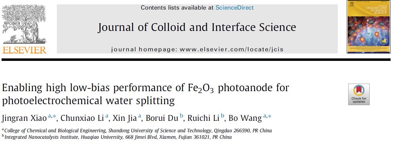 肖静冉(学术教授)、王博(教授)等人在光电催化水分解领域取得最新进展,相关成果以“Enabling high low-bias performance of Fe2O3 photoanode for photoelectrochemical water splitting”为题发表在国际知名学术期刊Journal of Colloid and Interface Science上(中科院一区Top,影响因子:9.9)。