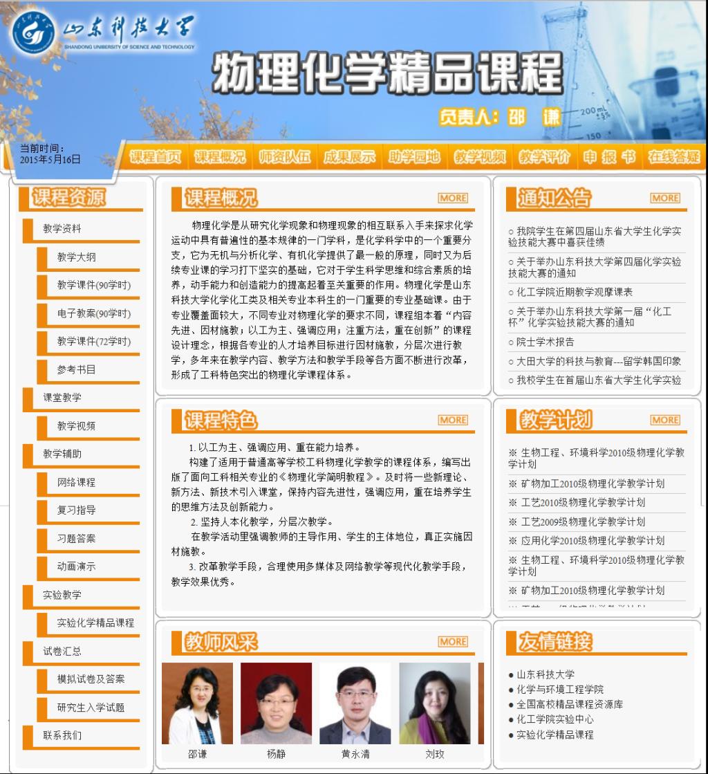 工科化学系列课程被评为山东省精品课程
